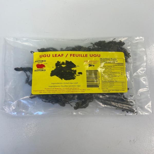 UGU Leaf (also known as fluted pumpkin leaf or Telfairia occidentalis) is a highly nutritious, dark green leafy vegetable widely consumed in West Africa, particularly in Nigeria. It is a staple ingredient in traditional dishes such as Nigerian Egusi Soup, Oha Soup, and Edikang Ikong.